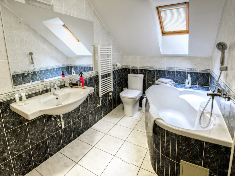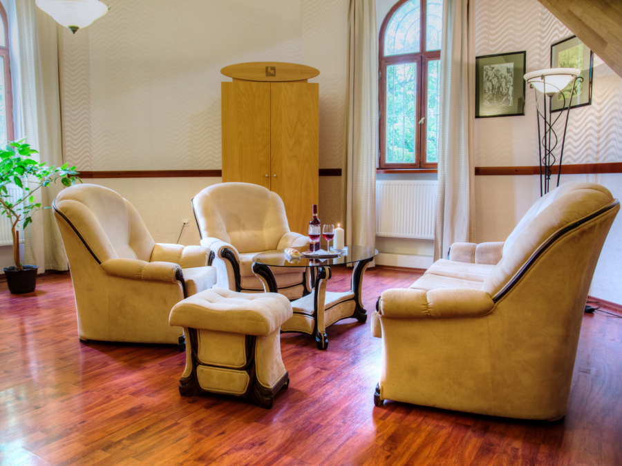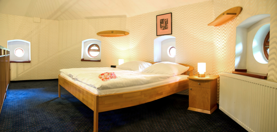 Mezonetový apartmán sa nachádza vo veži, na 1. poschodí, 3-hviezdičkovej depandance hotela, Žrebčín. Horné poschodie tohto apartmánu slúži ako spálňa s výhľadom cez okrúhle okienka na anglický park hotela. V dolnej časti nájdete priestrannú obývačku s krbom a pohodlným sedením, čo prispieva k pohodliu počas pobytu. Kúpeľňa je vybavená vaňou a všetkými potrebnosťami, vrátane županov a papúč. V apartmáne nechýba ani trezor, či klimatizácia, aby bol pobyt ešte príjemnejší.